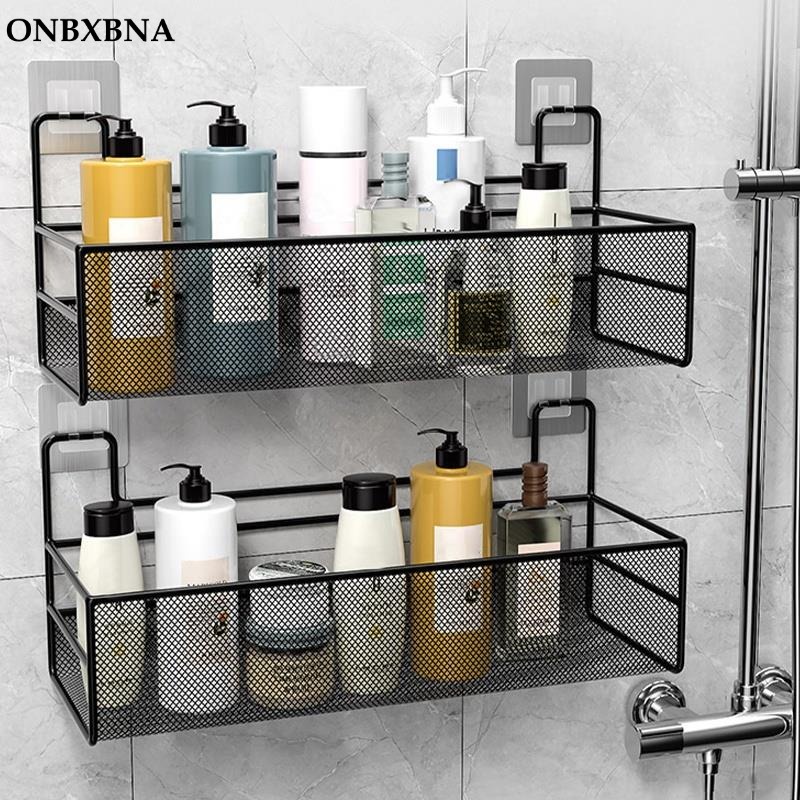Prateleira Prateleira de Banheiro Sem Perfuração Prateleira de Banheiro Cosméticos para Casa de Banho Copo para Escova de Dentes Armazenamento Rack Wall-Mounted Black Drainage