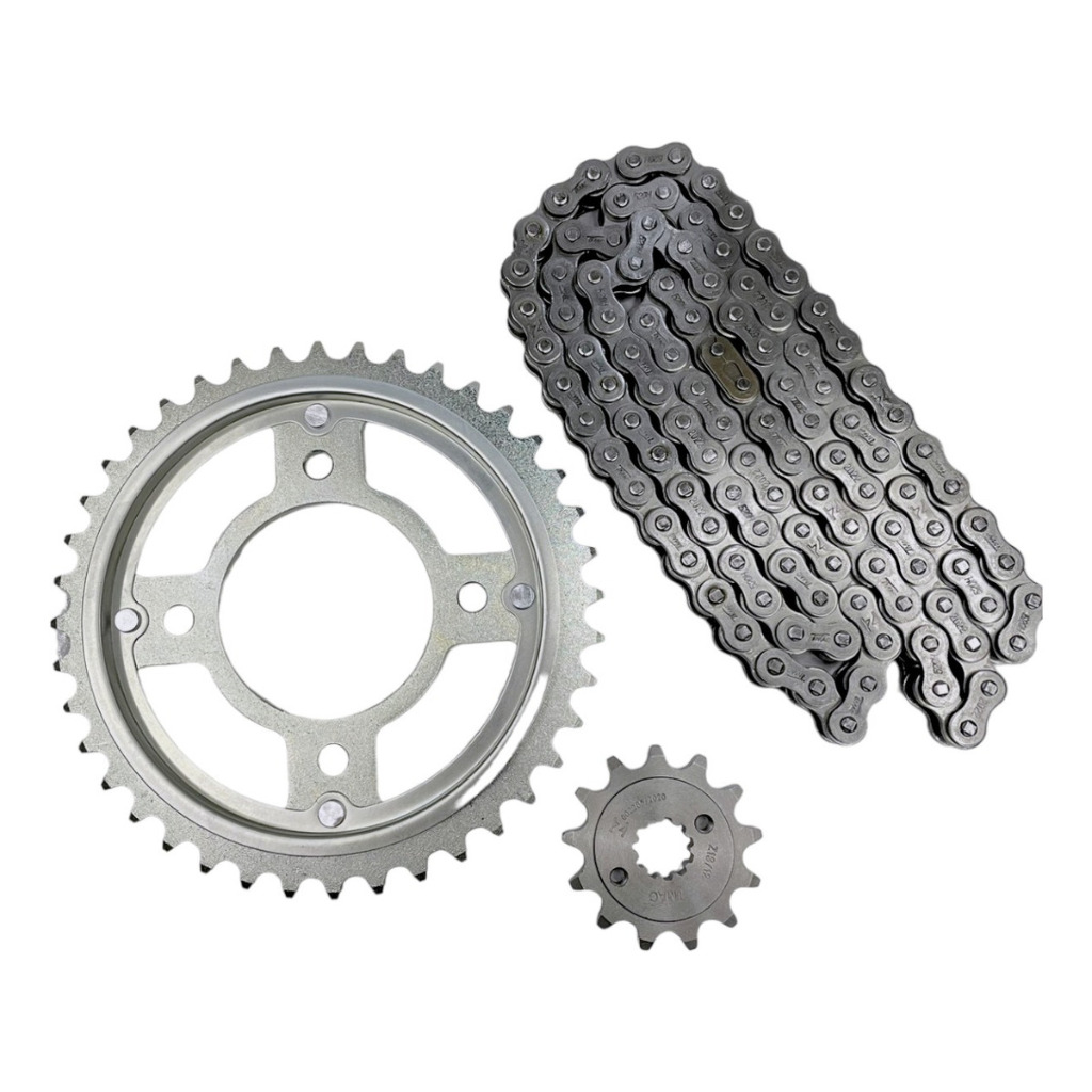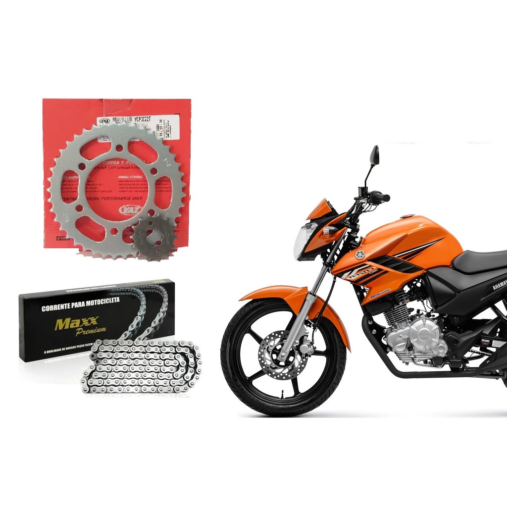 Kit Relação Tração Coroa + Pinhão Vaz + Corrente Maxx Fazer 150 Ano 2014 Até 2020 Aço 1045