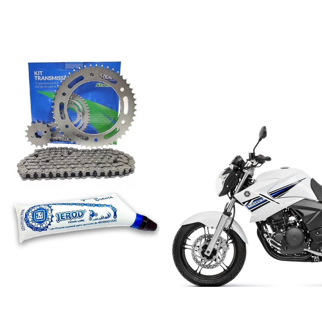 Kit Relação Cobreq + Graxa Branca Fazer 250 Ano 2005 Até 2017 Tração Corrente Coroa Pinhão Aço 1045 Reforçada H