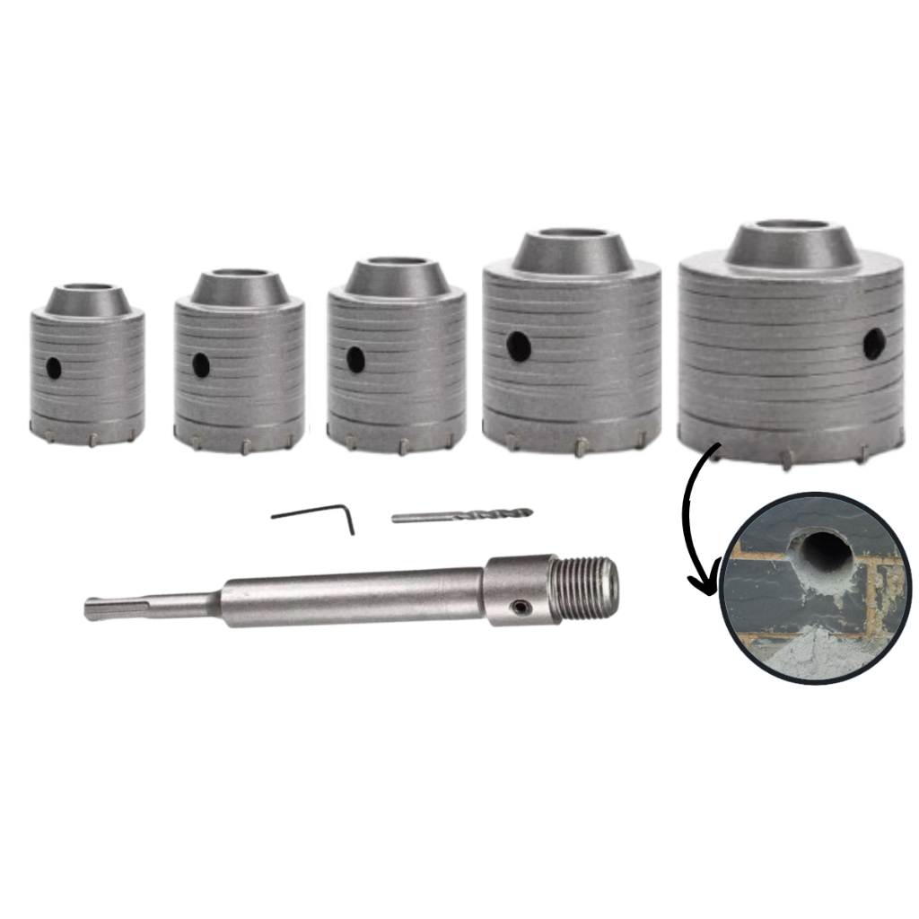 Kit 5 Pçs Serra Copo Videa Concreto Parede medidas 35/40/45/55/65 Rosca M22 + Haste Sds Plus 250mm