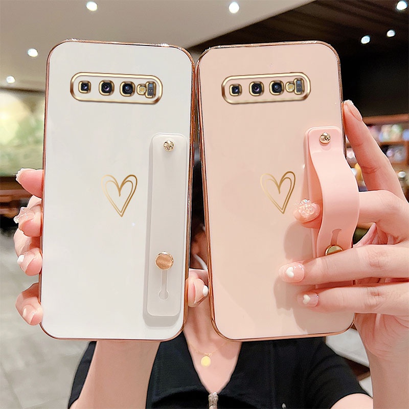 Estojo De Telefone Para Samsung Galaxy S8 Plus S8 + S9 S10 + Suporte De Luxo Coração À Prova De Choque Capa De Silicone