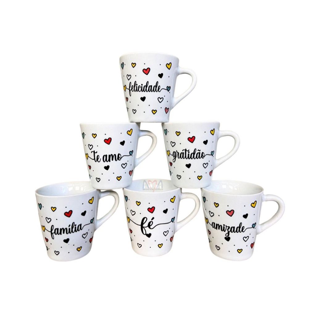 CONJUNTO COM 6 CANECAS PORCELANA BRANCA DECORADA FAIXA 280 ML