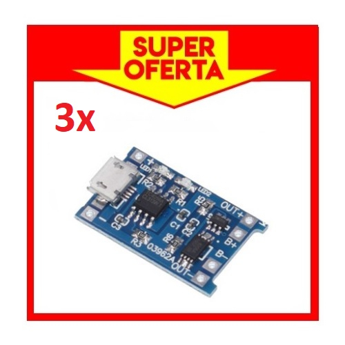 3 Unidades Módulo Carregador De Baterias Lítio - Bateria 18650 Entre Outras CI TP4056 Com Proteção