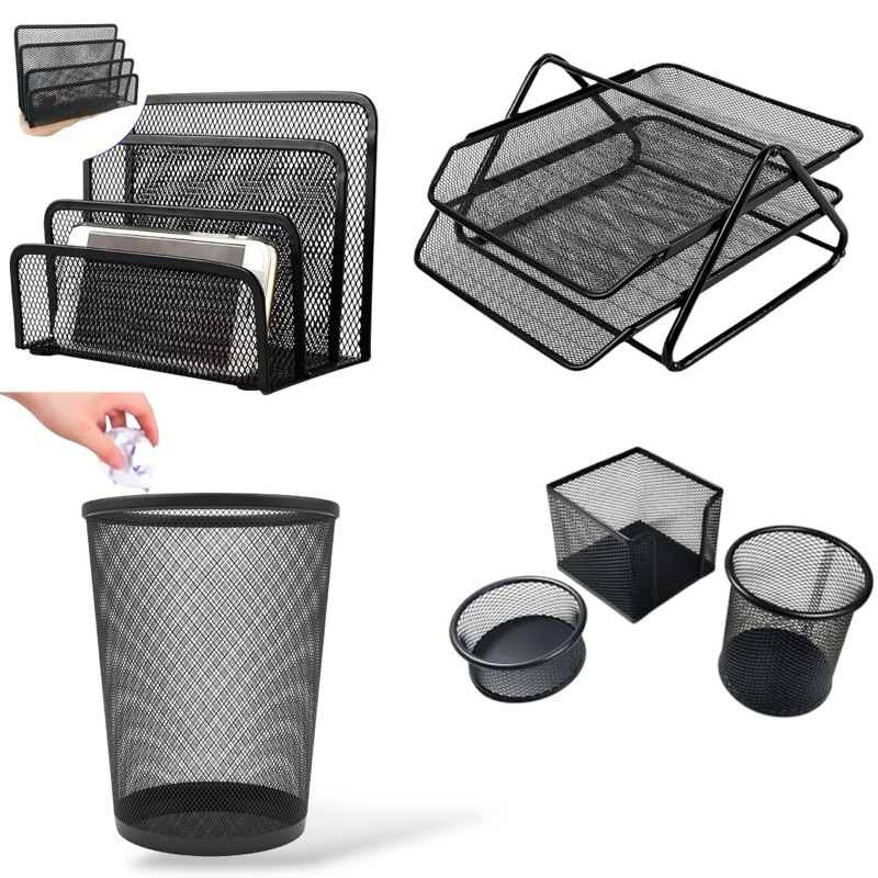 Kit Escritório Lixeira 4 Organizadores Porta Caneta Carta Papel Suporte 3 Bandejas Treco Home Office