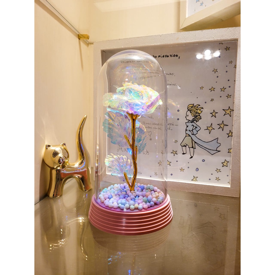 Luminária A Rosa Encantada Galáxia A Bela E A Fera com Bolinhas 20 cm Presente para namorada Rosa Mística O Pequeno Príncipe