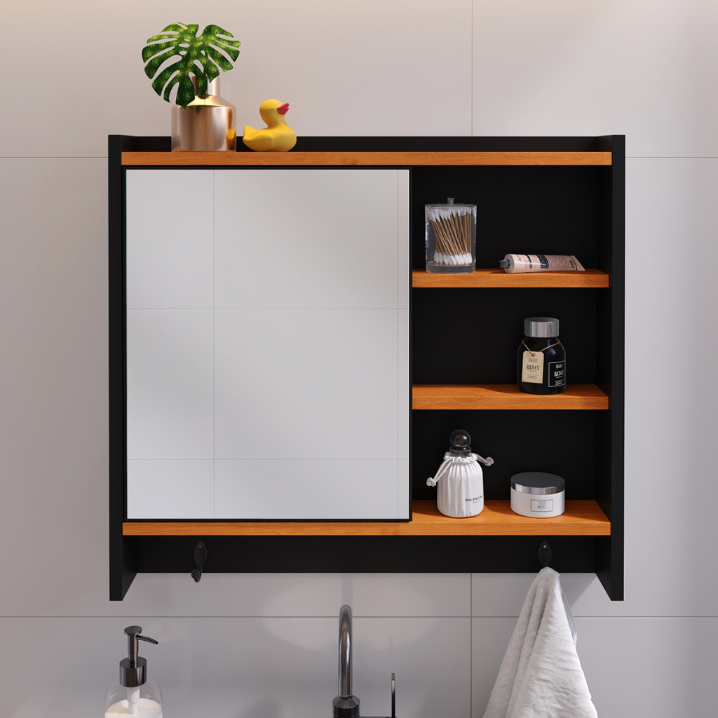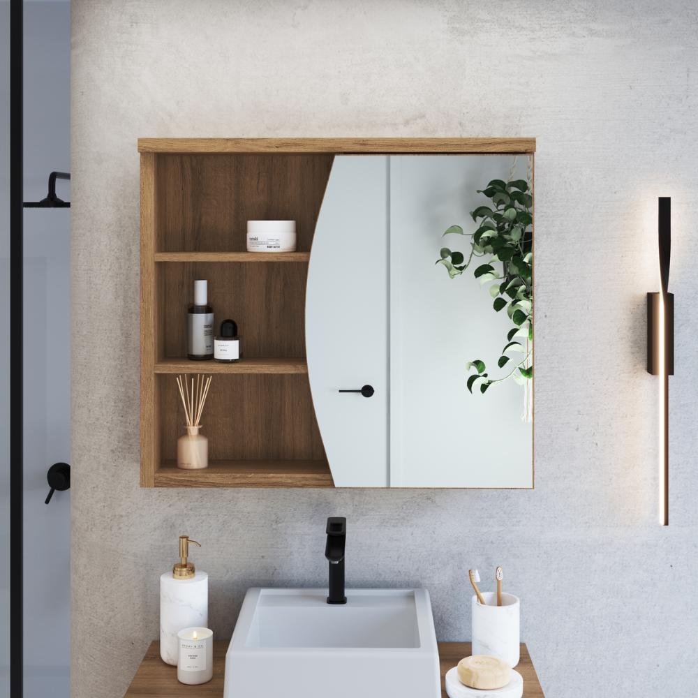 Armário Espelheira para Banheiro Laura com 1 Porta e Duas Prateleiras Mel