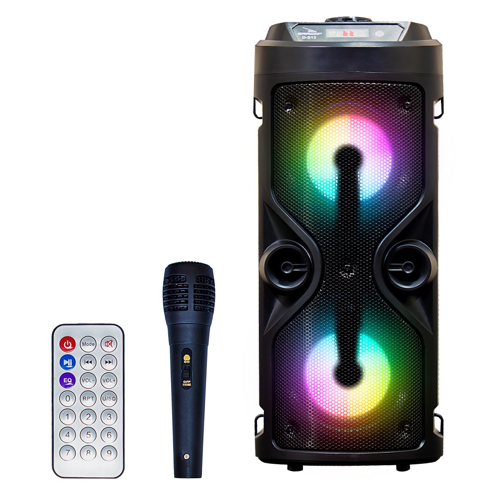 Caixa De Som Amplificada Portátil LED RGB Bluetooth USB SD Entrada P10 Microfone Radio Fm Aux P2