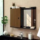Espelheira Para Banheiro 1 Porta Espelho Armarinho Suspenso Oferta dia das Mães- Preto/ Nature Ripado