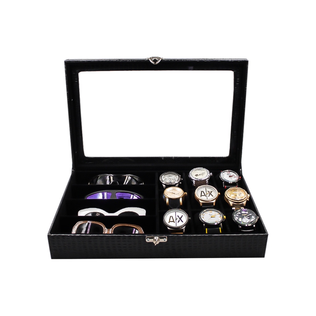Estojo Para 9 Relógios E 4 Óculos Com Preto Interno Aveludado