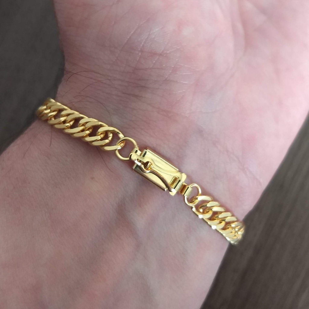 Pulseira Masculina Dourada Corrente 5mm com Fecho Gaveta
