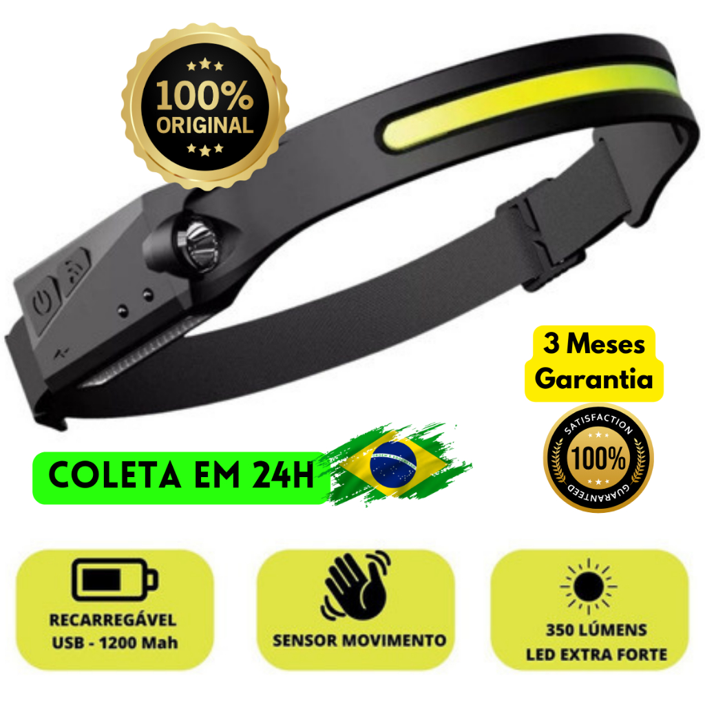 Lanterna de Cabeça Led Testa Recarregável Forte Recarregavel Capacete Pesca Trilha C/ Sensor Bike Farol Farolete Oferta UN Unidades