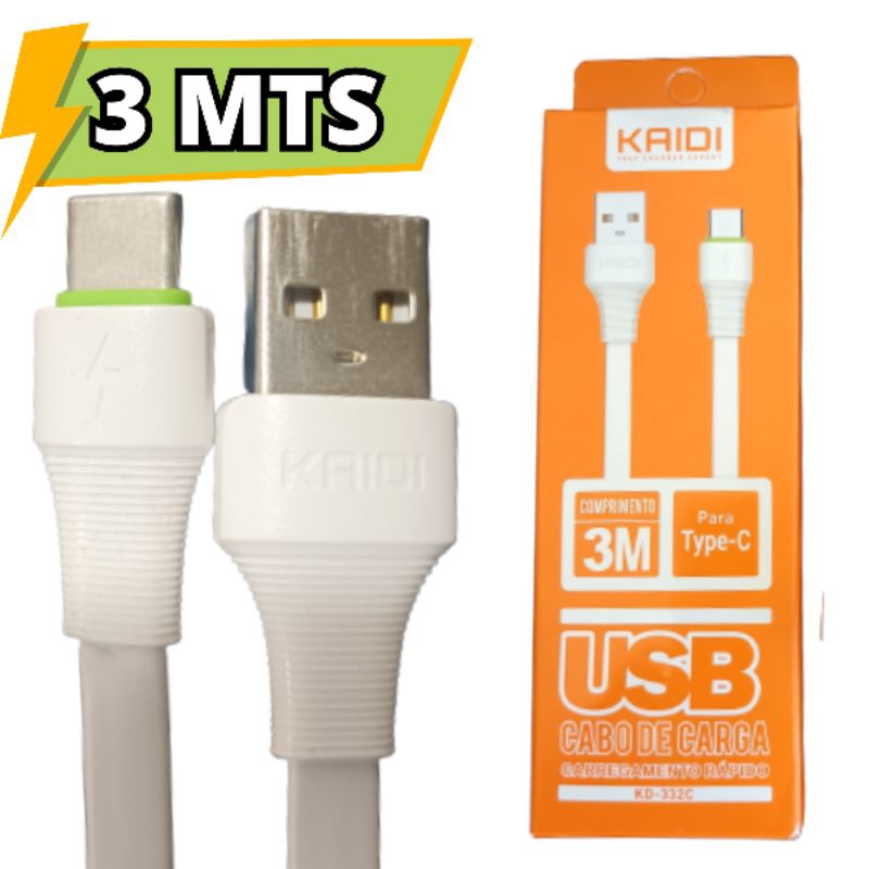 Cabo Rápido Flexível Type-C 3 Metros Usb -A p/ PD 9A