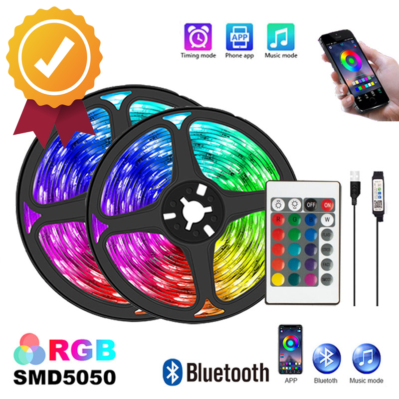 Fita LED 5050 1/5/10/15/20 Metros Conduzida USB Tiras De Luz RGB Mudança De Cor Por 24 Teclas Remoto E Bluetooth