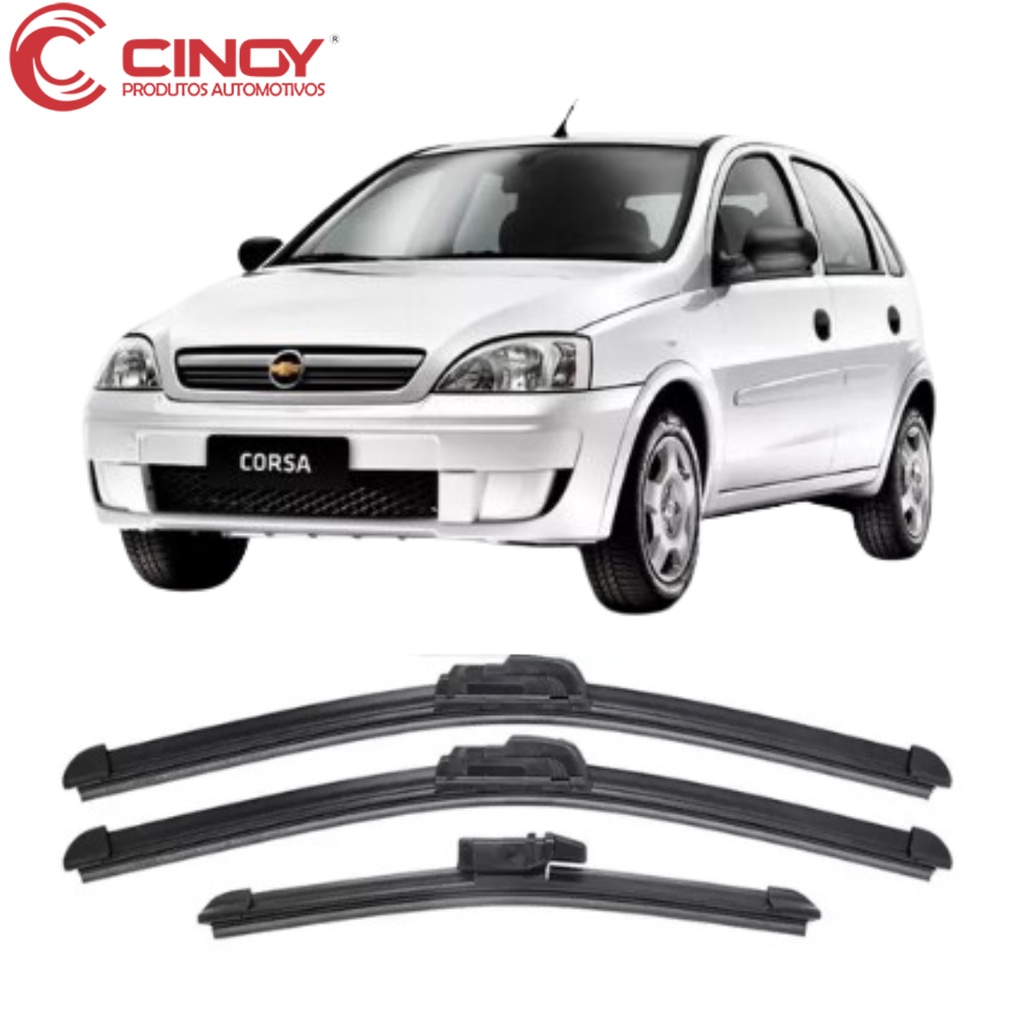 Kit 3 Palhetas Limpador de Parabrisa Dianteiro + Traseiro Chevrolet Corsa ano 2004 2005 2006 2007 2008 2009 2010 2011 2012 CINOY