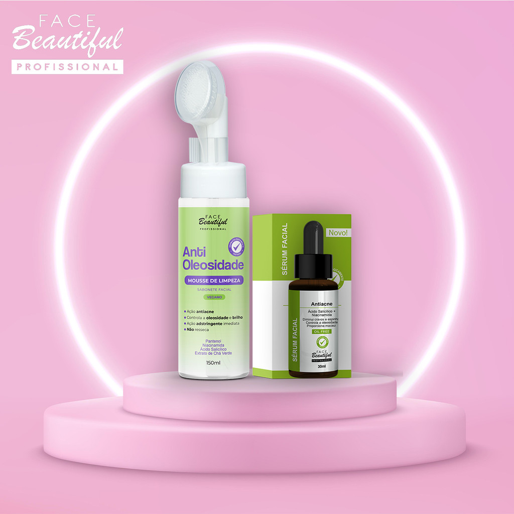 Kit Skin Care Cuidados com a Pele Mousse Facial Antioleosidade Sérum Antiacne Face Beautiful