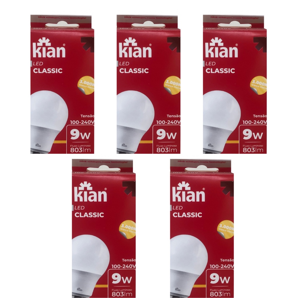 Kit 5 Lampada LED 9w Luz Amarela Branca Morna 3000k Iluminação Interiores Casa e Decoração