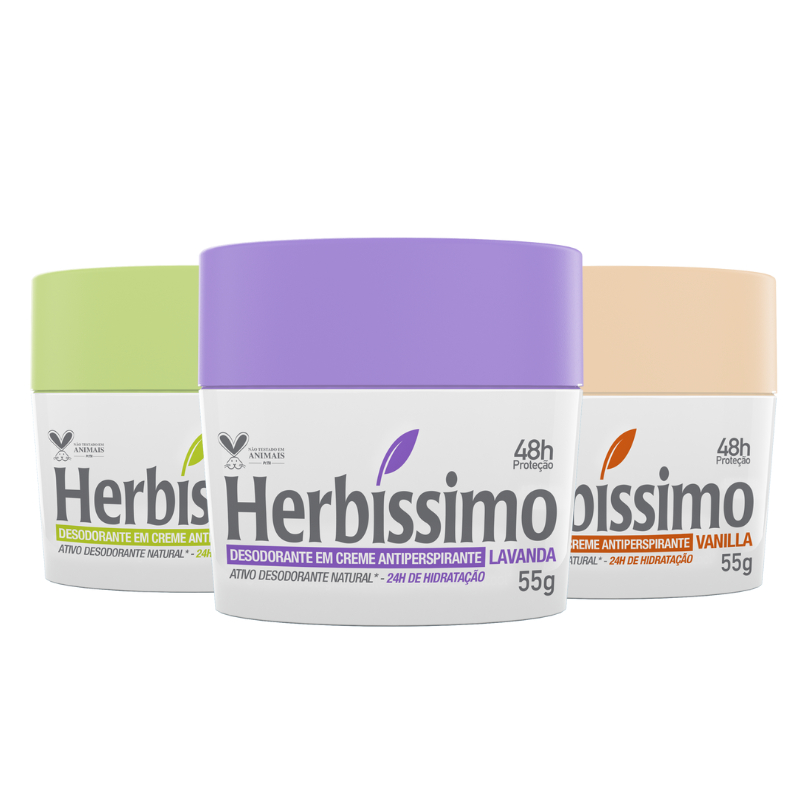 Kit Desodorante Creme Antitranspirante Lavanda, Vanilla e Fresh Herbissimo 55G - 3 unidades