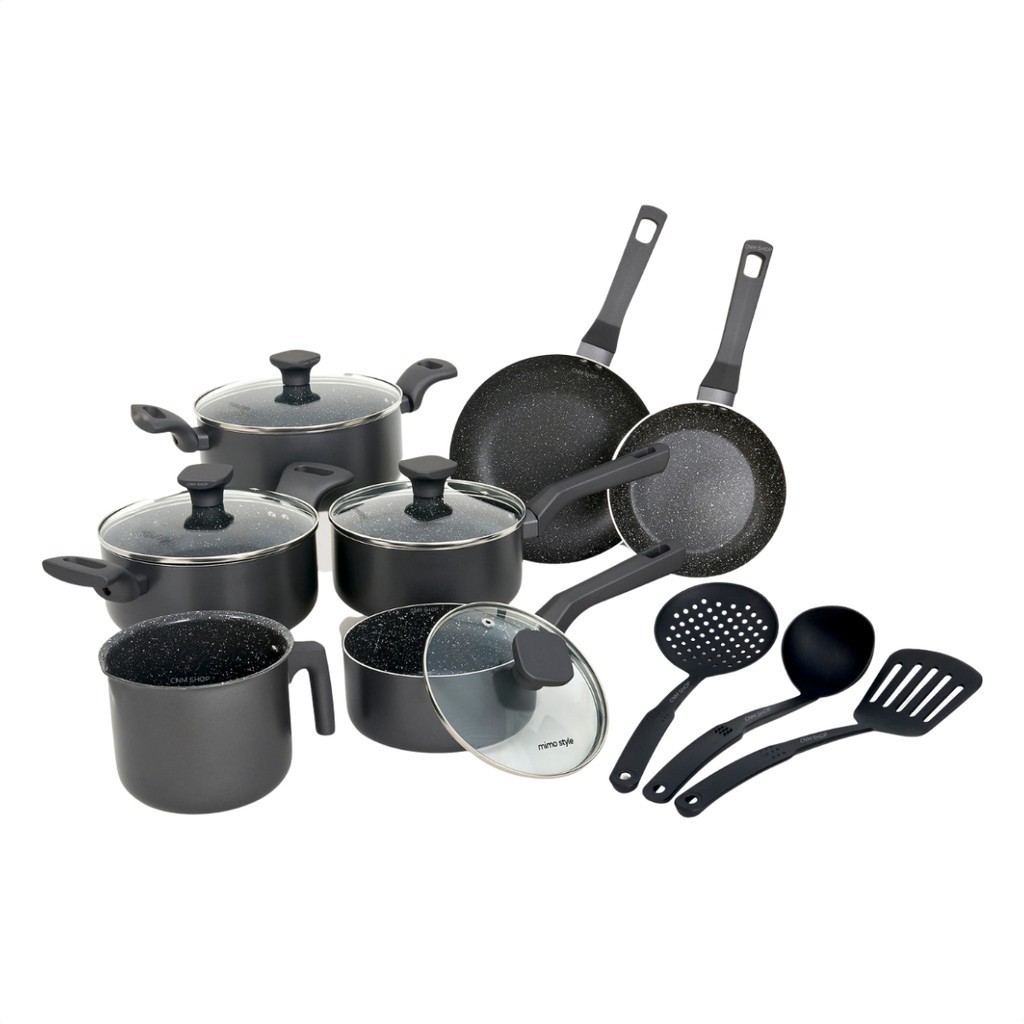 Jogo de Panelas 10 Peças Preto Antiaderente com Tampa de Vidro e Grill