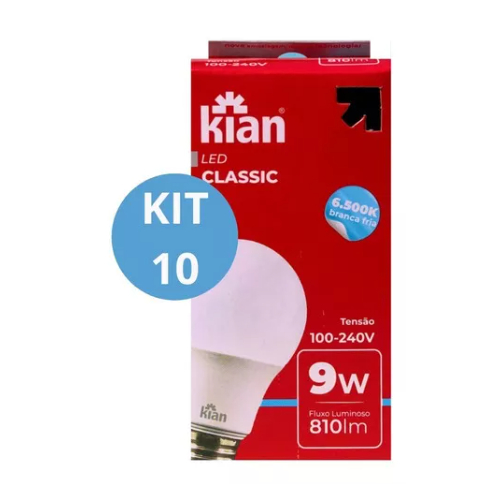 Kit 10 Lâmpada Bulbo Led 9w Branco Frio 6500k Bivolt Kian