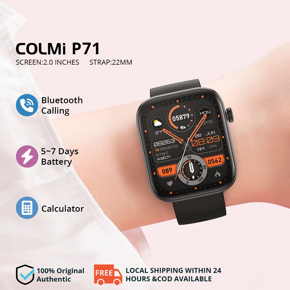 COLMI P71 Smartwatch Relógio Inteligente Para Pressão Arterial Masculina IP68 Bluetooth À Prova D'água Chamada De 22MM De Longa Duração Da Bateria De Silicone