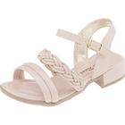Sandália Infantil Menina Stilo Rosê Tiras Trança Salto Baixo Confortável-8104 Nude