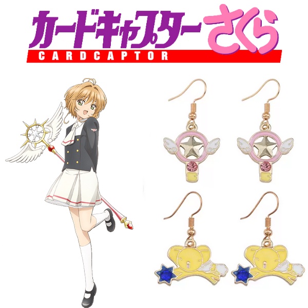 Brincos do anime Sakura Card Captors beseados no Báculo da Estrela, Cartas Clow, Chave do Selo e outros