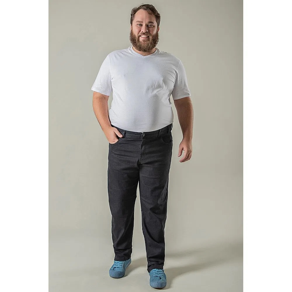 Calça Jeans Preta Masculina Plus Size Tradicional Slim Com Elastano