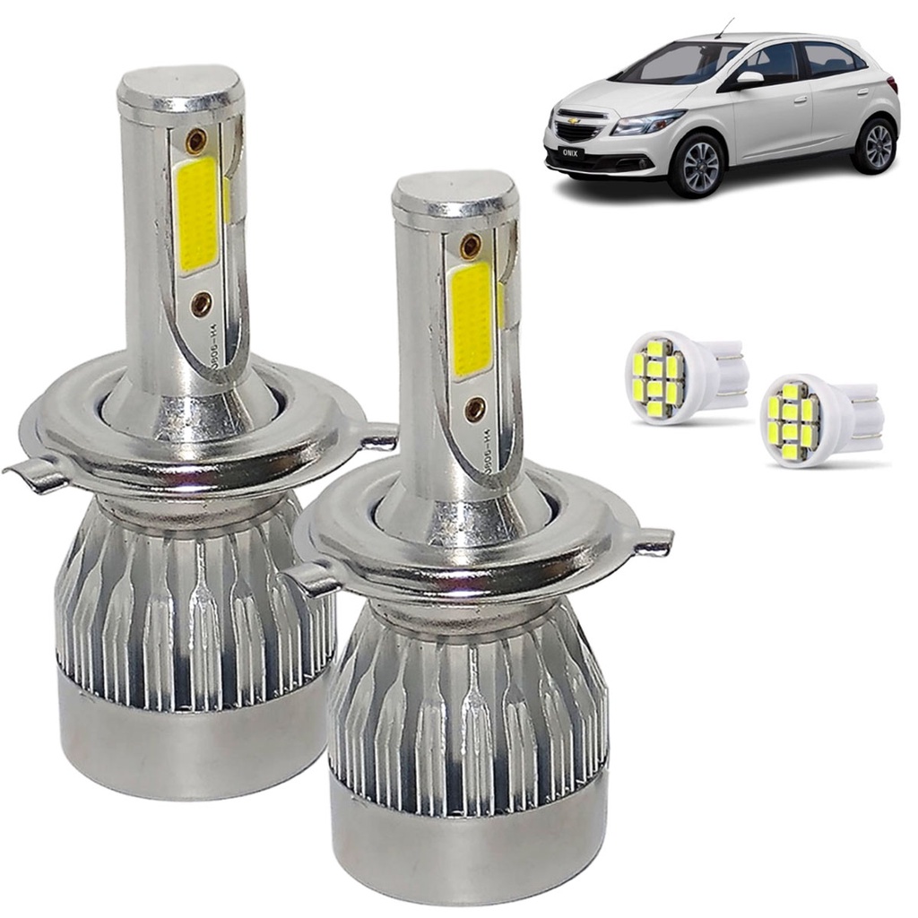 Kit Farol Chevrolet Onix 2012 A 2020 Lâmpadas SUPER Led H27 H4 + FAROLETE T10 ULTRA LED