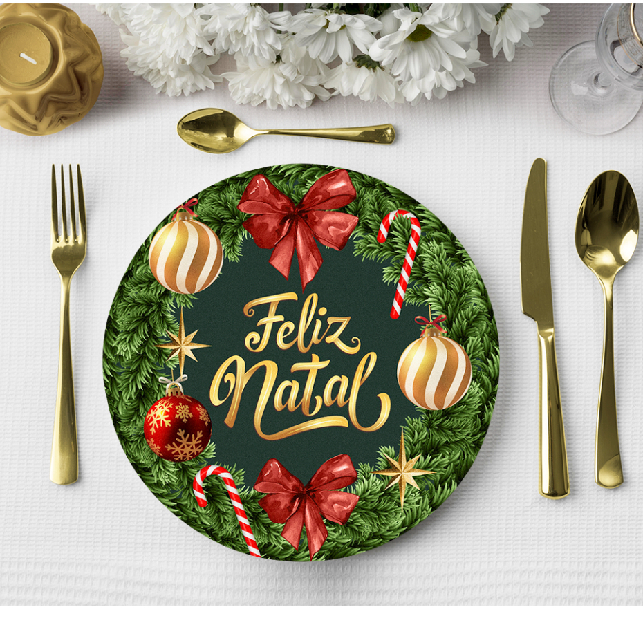 Kit 8 Capas de Sousplat Tecido Sublimado Mesa posta Festa de Natal Decoração Natalina 35cm