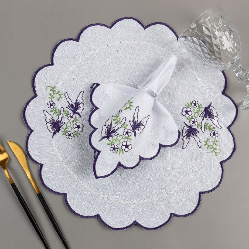 Kit Completo de Mesa Posta Sousplat Jogo Americano Guardanapos Bordados Redondo Varias Peças
