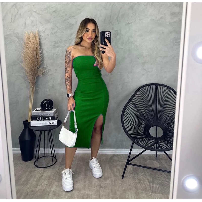 Kit 2 Vestido Tomara que Caia Canelado Midi com Fenda - Elegância e Ousadia