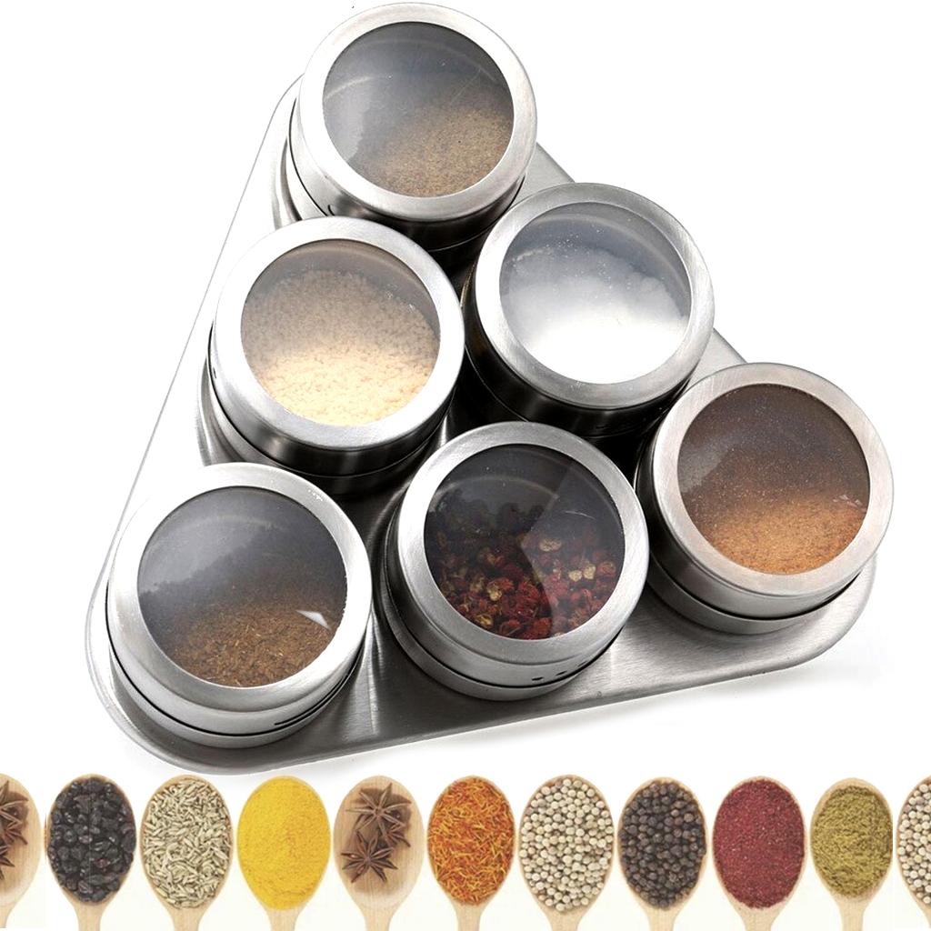 Kit 6 Porta Tempero Porta Condimento Inox Magnético Com Imã Para Geladeira e Suporte
