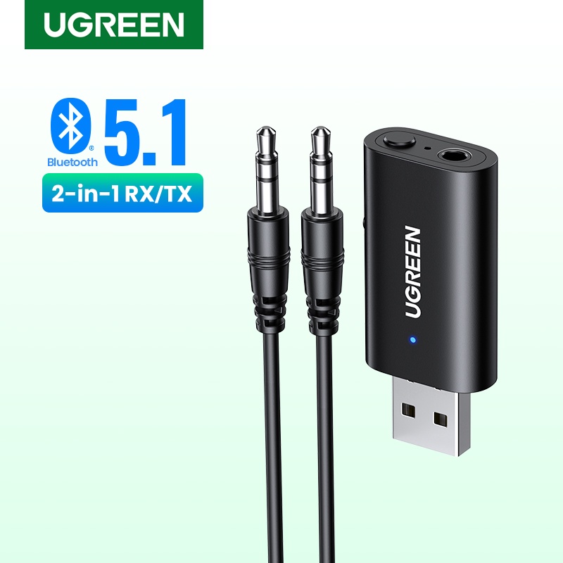 UGREEN 2 Em 1 Adaptador Bluetooth 5.1 Carro Receptor Transmissor Estéreo Sem Fio De 3.5mm Jack Aux Kit Mic