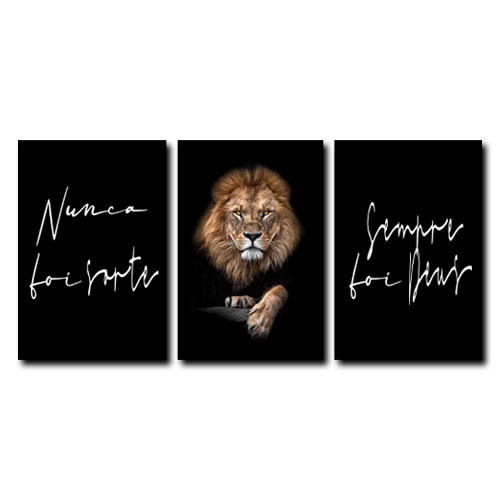 Kit Quadros Decorativos Mosaico 3 Peças Trio Frase Nunca Foi Sorte Sempre Foi Deus Salmo Religioso Leao Da Tribo De Judá Abstrato