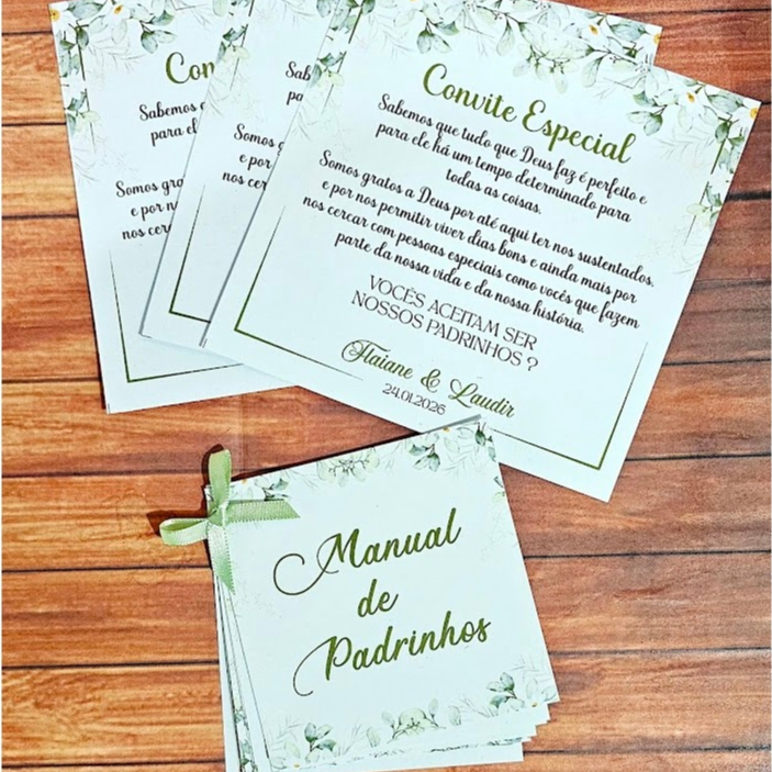 Kit Manual de Padrinhos +Convites para Caixa - Kit Manual e Convite - Casamento- Manual Madrinhas - Convites para caixa