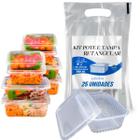 25 Potes 500ml Retangulares Descartáveis Com Tampa Para Freezer e Microondas Cristalcopo