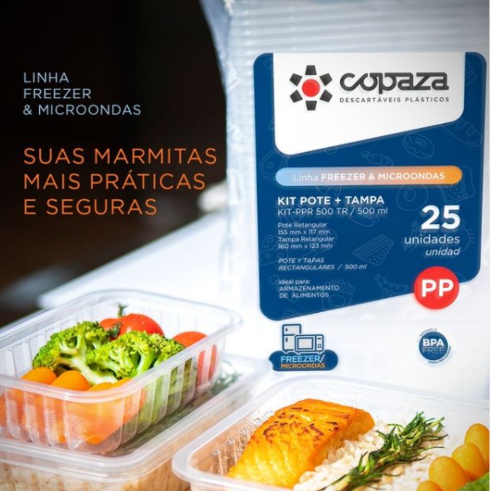 Pote 500 ML Marmita Retangular Freezer e Microondas Fitness 25/50 UN