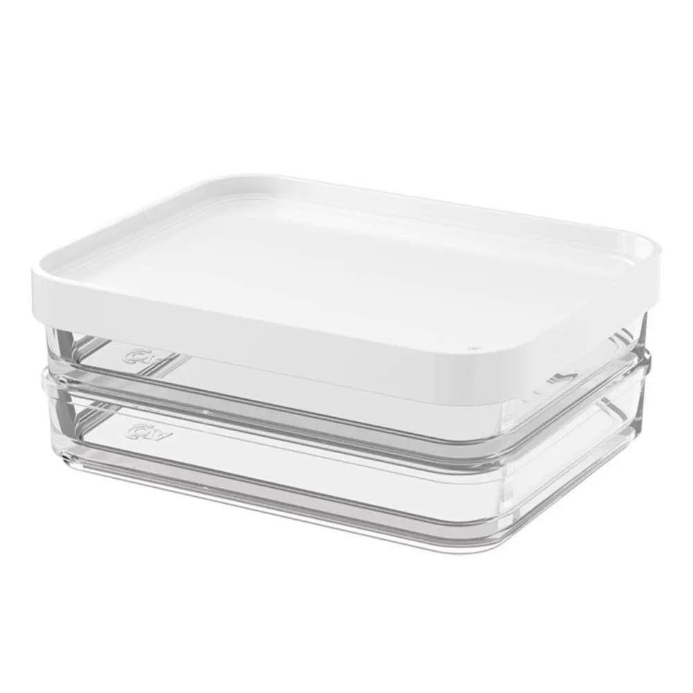 Pote Porta Frios 2 Divisórias Plasútil Empilhável Hermético Tampa Com Trava Trio e Vedação Presunto Queijo Mussarela Mortadela - Vasilha Potinho Cozinha