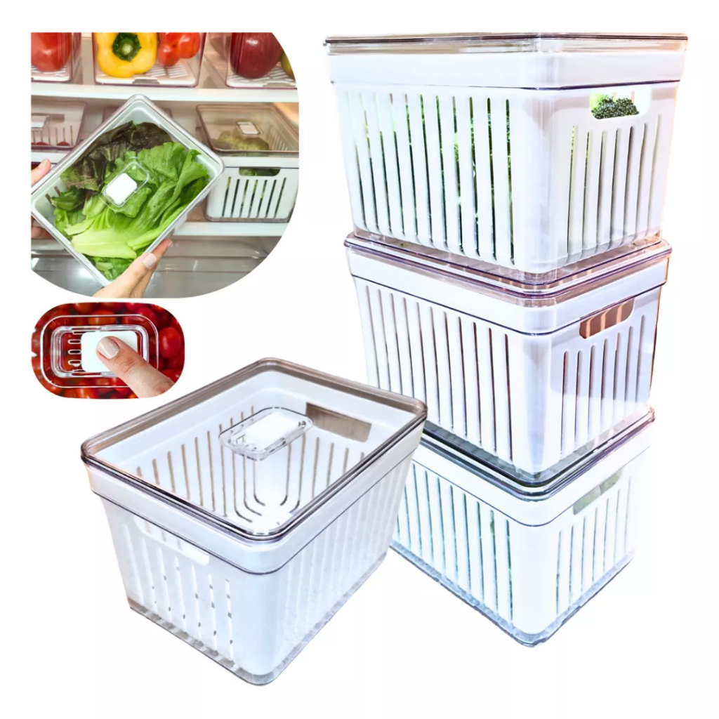 Kit 4 Organizador De Geladeira 2,2 Litros Alimentos Frutas Verduras Com Cesto