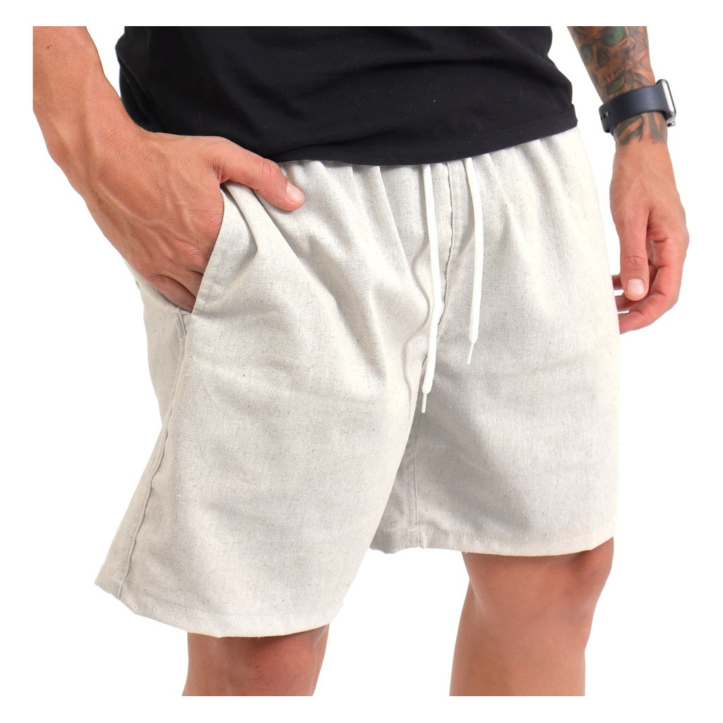 Short Em Linho Brim Masculino Mauricinho Cadarço e Bolsos Bermuda Moda Praia Moda Casual