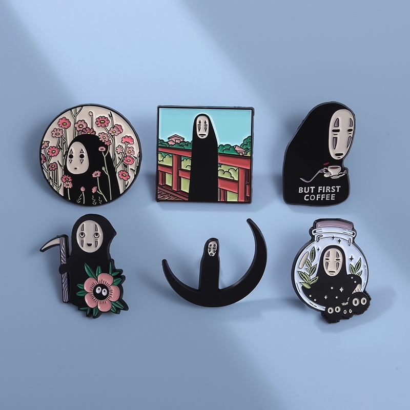 Bonito Sem Cara Homem Esmalte Anime Alfinete Espirituoso Briquetes Engraçados Broche De Pó De Fada Preto Lapela Crachás Jóias Presente Para Amigo