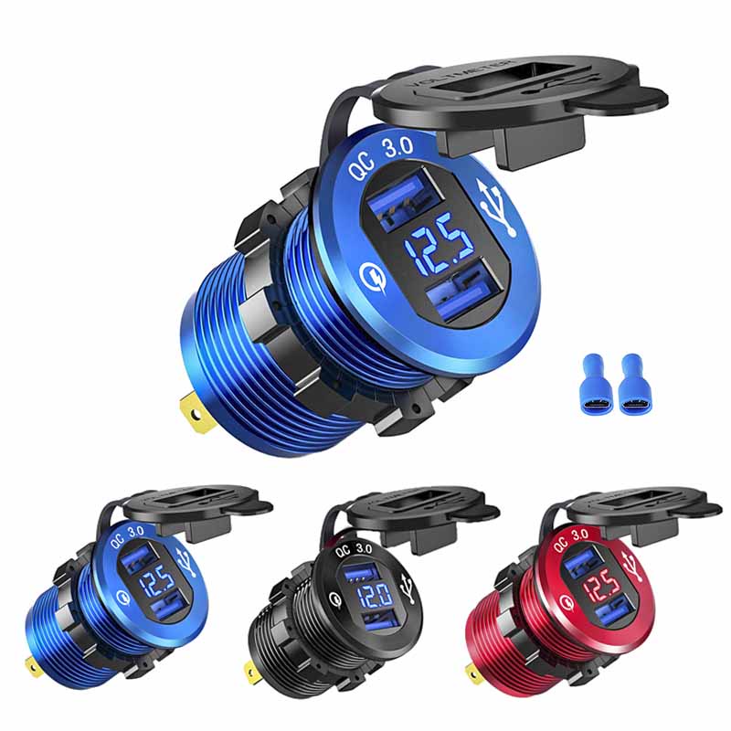 Carga Rápida 3.0 Tomada Carregador Dual USB De Alumínio De Energia Com LED Voltímetro Para 12 V 24 Carro Barco Marinha ATV RV