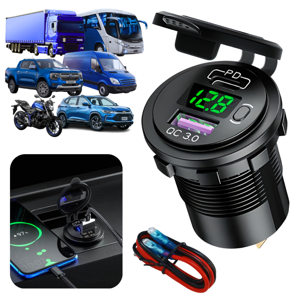 USB Carregador De Carro QC3.0 PD Tipo C Com Interruptor De Soquete Para 12 V/24 Veículos Barco Motocicleta SUV Ônibus Caminhão Caravan Marine