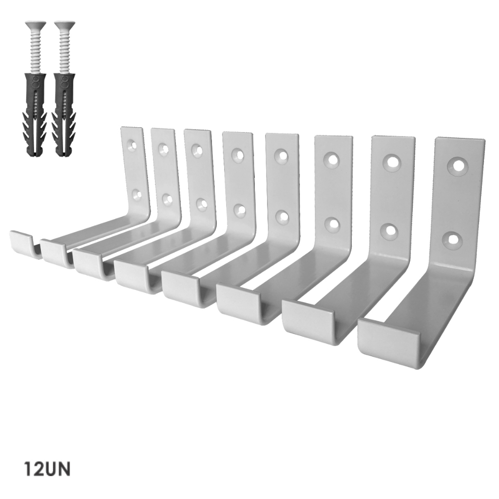 kit 12 Suportes Mão Francesa para Prateleira de 20 cm Branca ou Preta + Kit Instalação