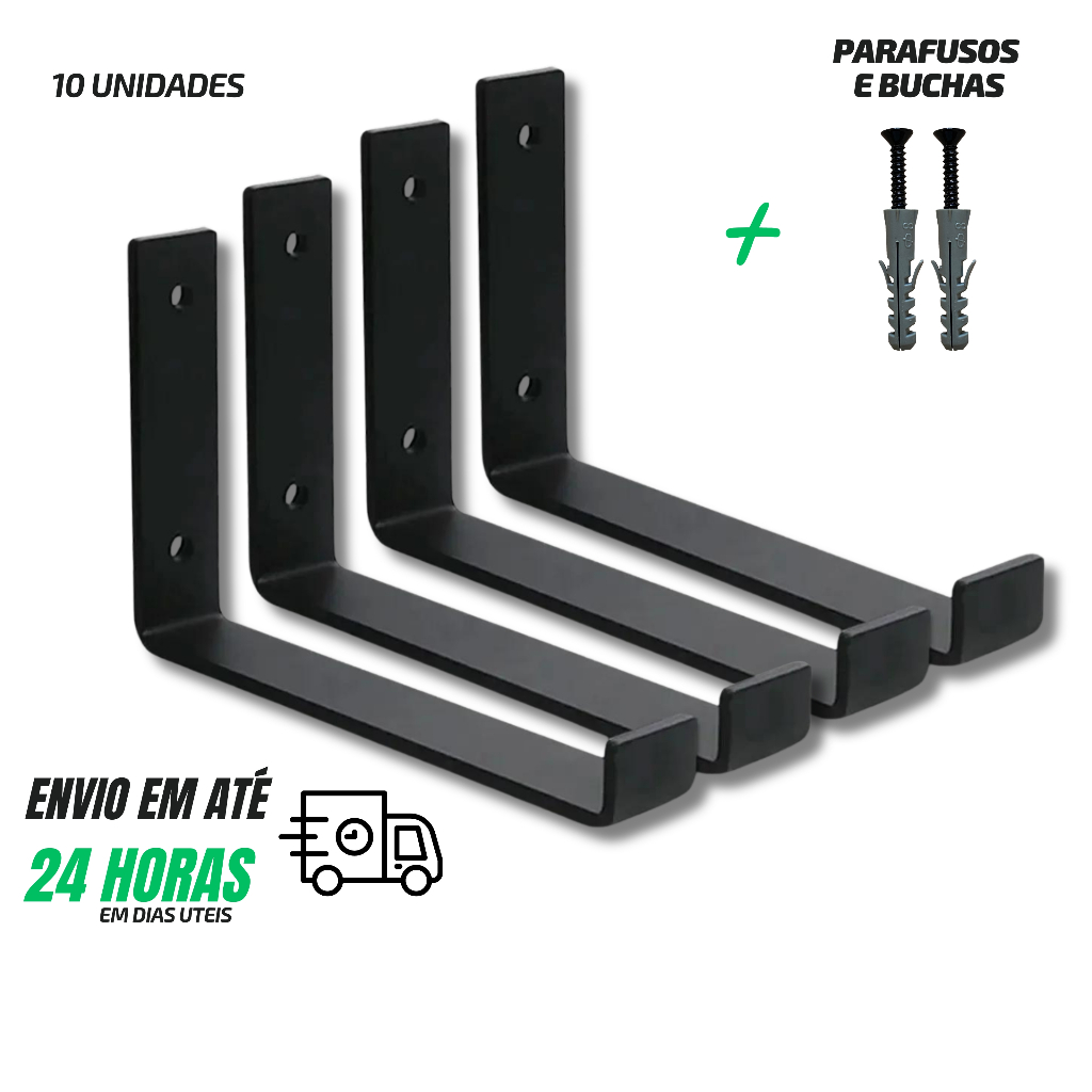 Kit 10 Suportes Mão Francesa para Prateleira de 20 cm Branca ou Preta + Kit Instalação