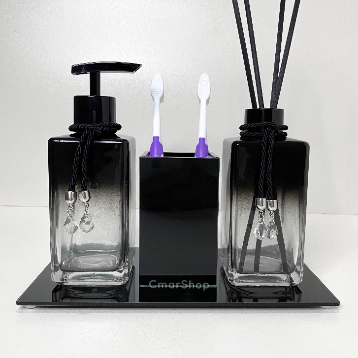 Kit Banheiro Preto Degrade C/ Porta Escovas Sabonete liquido e Difusor Aromatizador