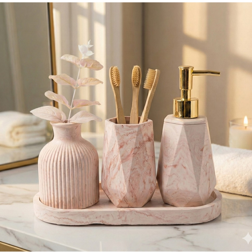 kit Aromatizante Lavabo saboneteira Líquido Luxo C/ Porta Escovas De Dentes e Bandeja