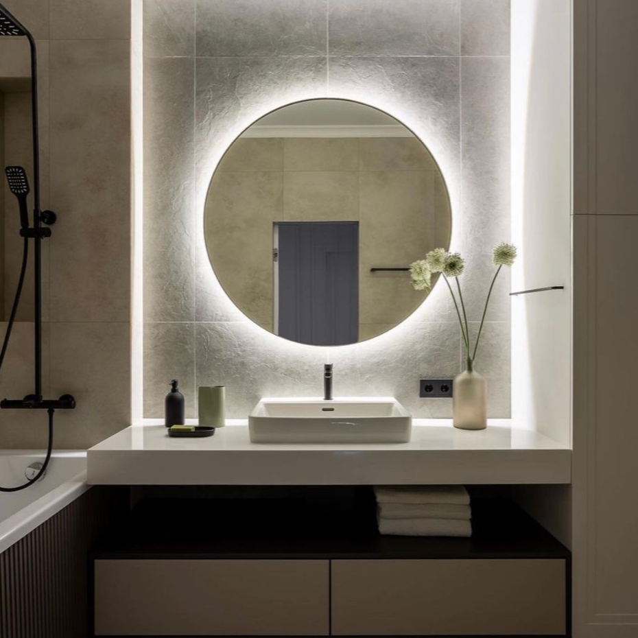 Espelho Redondo 50X50cm Lapidado com LED Sem Fio a Pilha ou Fonte 12v Decorativo Moderno (Luz Branca Quente e Branca Fria)