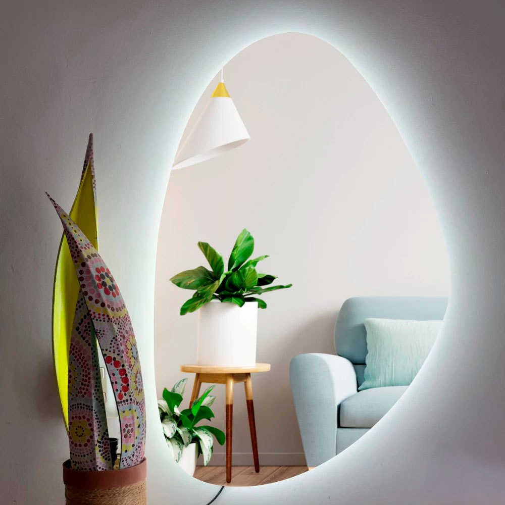 Espelho Orgânico Decorativo com LED S/ Fio Luz Fria E Quente