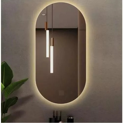 Espelho Grande De Parede Oval Com Led Sem fio Orgânico Banheiro Sala Quarto Luz Quente E Fria